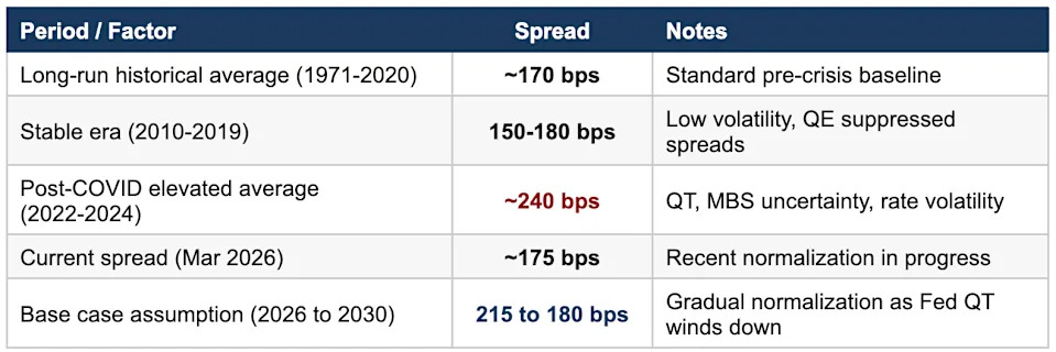 Some offers on this page are from advertisers who pay us, which may affect which products we write about, but not our recommendations. See our Advertiser Disclosure. Mortgage rates have been volatile since the beginning of the Middle East conflict. But where are rates headed in the next five years, and should you wait for mortgage rates to fall significantly before buying or refinancing? Mortgage interest rates are determined by several factors, all of which can give us clues about the future. Let’s take a closer look at mortgage rate predictions over the next five years. Here are the housing market predictions for 2026. One of the most useful indicators for predicting mortgage rates is the yield on the 10-year U.S. Treasury note. Mortgage rates and 10-year Treasury yields typically move in the same direction, although mortgage rates are usually higher because lenders factor in additional risks. This difference between the two is known as the spread, and we’ll account for that when estimating where mortgage rates could go. With that in mind, the first step is to look at where economists believe Treasury yields are headed over the next five years. To build a forecast, we’ll combine expert economic projections with data compiled using artificial intelligence. Michael Wolf, a global economist at Deloitte Touche Tohmatsu Ltd., outlined the firm’s Treasury yield expectations over the next five years in a December update from the Deloitte Global Economics Research Center. "We assume the Fed leaves rates unchanged until December 2026. The average federal funds rate reaches its neutral 3.125% in the middle of 2027," he wrote. Wolf said the 10-year Treasury yield will ease gradually through the second quarter of 2027, "to settle at 3.9% from the third quarter of 2027 through the end of 2030." Let's chart that forecast. Other forecasts point to somewhat higher long-term yields. For example, Goldman Sachs analysts expect the 10-year Treasury to rise over the long term to 4.5% by 2035. Meanwhile, the Congressional Budget Office (CBO) projects that the 10-year Treasury yield will reach 4.1% by the end of 2026, rising gradually to about 4.3% by 2030. Anthropic's Claude artificial intelligence compiled the predictions into a consensus forecast, which we will utilize below. Read more: Why mortgage rates increased after the Federal Reserve rate cut As mentioned, the 10-year Treasury and 30-year fixed mortgage rates are separated by a spread. That difference between the two has been on either side of 2.5 percentage points in recent years. That's a significant change when compared to the spread from 2010 to 2020, when it was under two percentage points — and often near 1.5. Using a 2-percentage-point spread, here's an example of how Treasurys and mortgage rates compare: 10-year Treasury rate = 4% Spread = 2 percentage points Mortgage rates = 6% Here's a recent example: As of March 5, the 10-year Treasury yield was 4.09%, and the 30-year fixed mortgage rate was 6.00%. The spread was 6.00 - 4.09 = 1.91 percentage points. The spread is under two percentage points, which is one reason mortgage rates have decreased. Claude AI suggested using a variable spread that slowly compressed: "The spread between 30-year fixed mortgage rates and the 10-year Treasury is driven by prepayment risk, credit risk, and supply/demand for mortgage-backed securities (MBS). The Federal Reserve's quantitative tightening (QT) program widened spreads after 2022 as private markets absorbed more MBS. Spreads have begun normalizing in late 2025 and are expected to continue tightening." Using these spread estimates, we can now complete our five-year mortgage rate forecast. Using the Treasury forecast, we add the Claude-suggested base case assumed spread between the bond market and 30-year fixed mortgage rates to compile a five-year forecast: Read more: When will mortgage rates will go back down to 6%? While this forecast is for a base case with gradual normalization to the spread, the easing of inflation, and modest Fed monetary policy, Claude AI also prepared a "bull" estimate and a "bear" estimate: "The Fed successfully guides inflation back to 2% without a hard recession. Gradual FOMC rate cuts through 2027 pull the 10-year yield to 3.3% as the term premium compresses. The MBS spread normalizes toward its long-run average of 170 bps as QT ends and private MBS demand recovers. Result: a 30-year fixed rate near 5.00% by 2030." "Inflation remains sticky above 2.5% and mounting U.S. fiscal deficits push the term premium higher, keeping the 10-year yield near 4.4 to 4.6%. The spread widens to 240 bps as market volatility and MBS supply weigh on secondary markets. Mortgage rates climb toward 7.00% by 2027 before easing slightly to 6.60% by 2030." Of course, these are long-range estimates based on historical norms and broad expectations. All of these numbers could be thrown out the window if any of the following happens: The 10-year Treasurys outperform or underperform the forecast. For example, yields could crash in a severe economic setback, such as a recession, or soar on mounting government deficits. We've seen just how unpredictable interest rates can be with wild cards such as geopolitical unrest. The spread between Treasurys and mortgage rates narrows — or dramatically widens. Monetary policy, as driven by the Federal Reserve, substantially changes. There is no forecast that predicts a 3% mortgage rate in the next five years. However, who saw such low home loan rates on the horizon in 2007 when rates were about where they are now? Things like the Great Recession and a global pandemic are rarely on the radar, and such drastic events are what it takes to move mortgage rates into the cellar. The analysis above predicts 2027 mortgage rates to be near 6%. Based on the estimates above, mortgage rates are not expected to drop significantly in the next five years. However, a recession or other unknown disruption to the economy (such