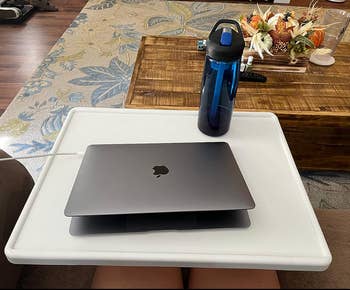 Promising review: "This table is exactly what I was looking for to be able to use my mouse and keyboard for the computer while working from home. It’s plenty stable and easily moved to the side for storage or when I need to get up from the chair. I also use it as my lunch table and to hold my iPad when not on the computer." —sleuneberg