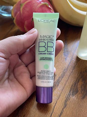 Promising review: "I’d yet to find anything (even foundation) that could cover up my red areas. Checks, chin, nose, and forehead. It comes out green, but has a gorgeous lightweight finish of a tint that indeed covers my redness beautifully. There’s no greasiness to it at all. It dries down to a beautiful matte finish. It’s super easy to use. I use my fingers. The texture is like silk. It leaves my face baby-soft, not sticky at all. It doesn’t settle into my fine lines or wrinkles, and I don’t need powder to 'bake' it under my eyes. It also covers the black circles under my eyes." —Julie F.