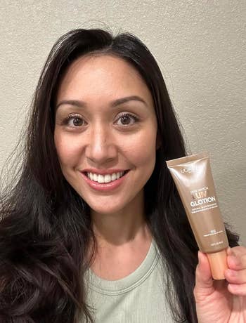 Promising review: "Love love love this stuff. This is such a stellar product that is so versatile. Can be worn alone to put some glowy life to skin. Add to foundation or layer it. Beautiful. Use it as a base where you put highlighter on top. Mix some with moisturizer. This, in my opinion, is better than so many high-luxury brands that make similar products. And I am pretty sure it can be used by all skin types. It’s not an oily feeling at all, and it doesn’t dry out the skin either. Just a total package. Can’t beat the price either." —Figgy08