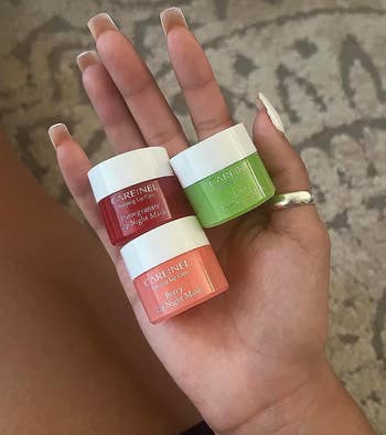 Promising review: "BUY IT, you won't regret it! After purchasing some of the more expensive Laneige ones, I decided to try this lip balm. I feel like these work so much better, and for so much less money! I'm obsessed with the scents and the formula is non-sticky, in my opinion, just a good slick balm. Peach smells like the peach ring candies, and honeydew actually reminds me of the old B&BW scent Cucumber Melon." —Kelly