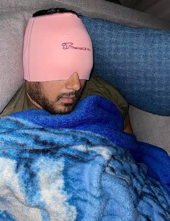 Promising review: "I heard about it on TikTok, and I was skeptical. I put it in the freezer as soon as I got it in the mail. Then, out of nowhere, I felt a headache coming on. I pulled it out of the freezer, slipped it on, and I passed out. When I woke up, my migraine was gone. I now go to bed with it on almost every night. I love that it's a blackout mask. I HIGHLY RECOMMEND!!!!" —TheWalkFam