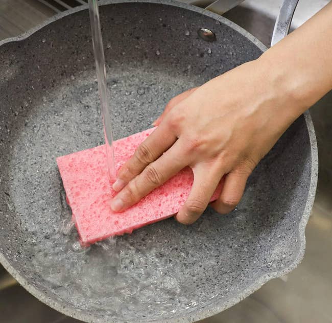 Promising review: "These sponges arrived very flat; however, they fluffed up once they were put in liquid. I vigorously used one sponge to scrub over 40 kitchen cabinets. It did get discolored from the gunk on the cabinets, but held up well. It did not fall apart, and once it was cleaned, it looked like new again. It was soft enough not to damage the cabinets, but stiff enough to get them clean. I am impressed with these little scrub brushes as I use them with a degreaser product as well as soap and water." —teal54