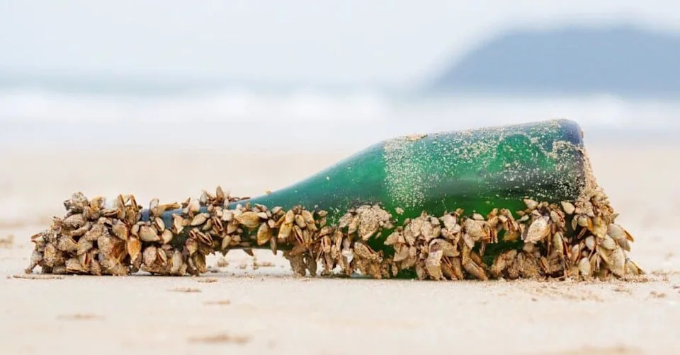 Barnacles attach to bottles, boats, and other human-made surfaces, turning them into a rough habitat in coastal waters.