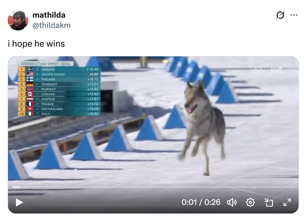 I Truly Cannot Believe This Video Of A Wolf Dog Crashing An Olympic Race Is Real
