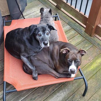 We hope you love our recommendations! While every product is independently chosen by our editors, BuzzFeed and our publishing partners may collect a share of sales or other compensation from the links on this page. You can read more about how our affiliate partnerships work in our Editorial Standards & Ethics Guide. There are dog owners, and then there are people who treat tail wags like performance reviews. Promising review: "These venison no-hide treats are my dogs' favorites. I had no idea anything like this was even available until someone gave me a package for Christmas. They kept my dogs busy for hours, and the best part is that there is no rawhide in them, just nutritious meat and vegetable ingredients, so you don't have to worry about all the nasty chemicals involved in making rawhide treats. I bought several packages in all the available flavors to have on hand for an occasional special treat. Your dog will love these." —Mary Price: $10.49+ (available in three pack sizes and six flavors) Promising review: "We have a few of these now. I have the original one put away for safekeeping. So far, even our destructive dog has been very gentle with both, and currently, our 5-year-old dog got his first little Lamb Chop as a tiny puppy, and he has never been destructive. We got our youngest Yorkie at about 4 months old instead of 8 weeks old, and he had some bad habits that he developed before he came to us. So far, this is the first toy he has not chewed on for weeks already, and he's sleeping with it daily." —Kimberly Price: $3.99+ (originally $6.30+; available in three sizes) Promising review: "Our Lab mix has always suffered from anxiety, fear, aggression with strangers, and breaks in routine. We ordered this product after seeing several ads on our social media. He LOVES it, and so do we! Super easy to clean and refill, long-lasting, and the treat refills don't smell bad like other dog treats! Our sweet boy recently began to lose mobility in his rear end and gets super upset when he is unable to get around independently; this gives him the comfort he needs to just relax and lie down while enjoying a treat!" —Elizabeth Price: $19.85+ (available in three sizes and three colors) Promising review: "We have a dog who gets stressed with fireworks, so every holiday that involves fireworks, we fill this up, freeze it, and she's happy. Be careful leaving them alone with it because my other dog tore it up once the treat was gone." —Aly Promising review: "My new German short-haired pointer puppy, 'The Destroyer,' is a chewer when she is bored. Being no strangers to GSPs, it has always been hard to find a ball that will last. The last tennis ball, I think she made about 1,000 tiny pieces out of it! These balls seem to be indestructible, have some weight to them, and are good for throwing. The dogs love them!!" —M Price: $5.50+ for a two-pack (originally $12.99+; available in three sizes) Promising review: "At first, Willow wasn't quite sure about these freeze-dried beef liver treats. The texture gave her a moment of 'paws' (pun intended). But once she took that first crunchy bite, it was game over — she's absolutely hooked! Now, these treats are her go-to favorite. She'll sit, stay, and maybe even do a backflip if it means getting one. The 14-ounce tub is the perfect size to keep her tail wagging without running out too soon. If your pup needs a high-value treat to bring out their inner superstar, these are a must-try! Willow gives them two paws up!" —Kathy Price: $4.99+ (originally $5.99+; available in six sizes) Promising review: "My dogs are chewers, and one is a HEAVY chewer. These are strong enough for her to chew on for a few weeks and not a few hours or days. All three of the dogs love them, and they all smell like a different flavor. I will be buying more." —Cindy Price: $23.70+ (originally $29.95+; available in four sizes) Promising review: "I love, love, love this Snuggle Puppy! It is so cute, but the beating 'heart' and heat packs work great. While not a complete cure for my dog's newly found anxiety, he helped drastically! It has definitely helped keep him calm the majority of our time away from him. I consider this a win! I highly recommend it for a pup with anxiety." —Justine Price: $39.95+ (originally $49.99+; available in four colors) Promising review: "My dog (and kids, haha) love this thing. Great interactive toy. Very different than most dog toys. Makes a fun squeaking sound. A great way to keep the dog moving and active while I can stay seated. Love it." —Christie Price: $27.99+ (available in two sizes and two colors) Promising review: "I've bought these beds for several years, and my crew loves them! I have a large size so they can double up and nap together, and two smaller beds so they have their own space. The beds are great for summer as the material is breathable (like a tight mesh) and doesn't hold heat like a plush bed. In cold weather, I put a blanket on top, and it keeps them toasty warm. I especially like that the design is similar to a cot and keeps them off the ground. Easy to assemble, great concept, lasts for years, and can be used indoors and outdoors." —Cheryl Price: $19.29+ (available in three sizes and four colors) Promising review: "My dog is obsessed with this toy! Whether there are treats in it or not, he has so much fun sniffing around and pulling the dinosaurs out. He self-entertains with it, and we play with it together. His favorite game is getting all the dinosaurs out, bringing me the volcano, and retrieving them for me to put back. I wish the fabric were a little stronger (1.5-year-old retriever and soft fabric do not mix well). But somehow, he has managed not to completely tear it apart! Either way, we will be getting more of this style of toy!" —Sarah Promising review: "I have one dog (Lab mix, 9 years old, 85 pounds) who is generally pretty chill except he is TERRIFIED of thunderstorms and fireworks. Another of my dogs (L