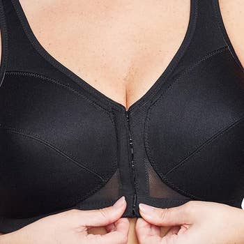 Promising review: "As a petite woman with a larger bust, I find well-fitted and comfortable bras hard to come by. This one is so comfortable and cute, and I really like the way the clasps are sort of magnetic. It makes it easier to find the right hook while uncomfortably reaching your arms completely behind your back. LOL." —Amber Way