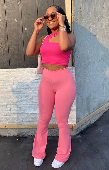 Promising review: "These flare leggings are amazing. The fit is super cute, especially with the flare at the bottom, and they hug in all the right places without feeling too tight. The fabric is soft, stretchy, and comfortable enough to wear all day. They move really well and don’t feel restrictive at all. Perfect for dressing up or keeping it casual — definitely a new favorite in my closet." —Natalia