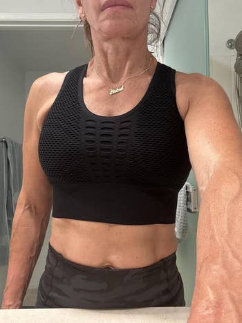 BuzzFeed Contributor Jordan Grigsby also owns and loves this: "I have this! I love it so baaaaddd. I wear it a lot for dancing, and it's always a solid pick. I look HOTTTTT, everything stays in place, and it doesn't make me all sweaty. And believe me, for as much as I move in dance, it really surprises me that a boob hasn't popped out. The back also stays in place. I wore this to a dress rehearsal while on my period, so my panties were full panties, which I thought the top of them would show after a few minutes of dance, but no, no panties showing. A buttery soft dream come true, really. Obsessed. I need it in more colors!"