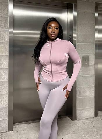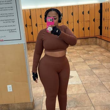 Promising review: "The material and look are expensive, and well-crafted. Similar to Gymshark, but with way better pricing. I’m 5’8, and the length is great. It is stretchy, yet holds you in, leaving you feeling confident and comfortable. The material isn’t see-through. I ordered it in almost every color after my first set." —Amazon Customer
