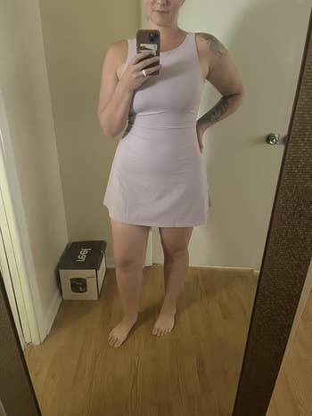 Promising review: "What an adorable tennis dress! 🤩💙🎾 The material is high quality with a good stretch. I sized up and wearing a L since I’m a D/ DD cup size. ☺️ it’s so breathable and comfortable! Love the side pocket in the attached shorts. I can’t wait to order in another color! 💕" —Ebony Israel-Grover