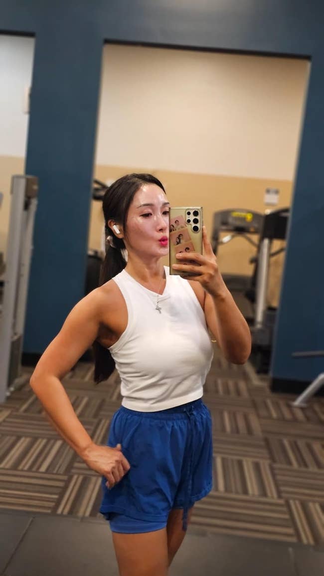 Promising review: "I am SO incredibly impressed with the quality of this. The fabric quality is comparable to Lululemon and other high-quality brands. I’ve worn it as a tank, with and without a sports bra underneath, and it can be worn without and still provide great support. This is the perfect tank to wear for workouts or as athleisure, whether running errands or hanging out. Super cute. Fits true to size." —JBrewer
