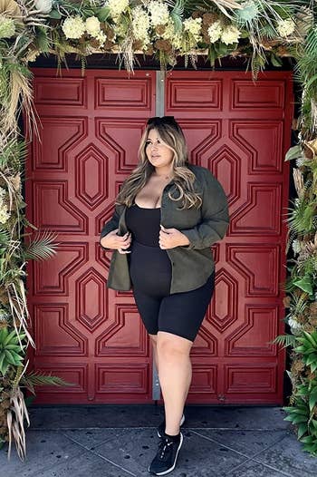 Promising reviews: "I definitely recommend, the material is stretchy and soft. I purchased a 3x and I could have went down a size but it’s comfort for me. I also purchased the pink one and I can’t wait to wear it. Big mama approval!! ❤️" —Suchafcknladi