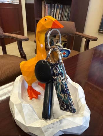 We hope you love our recommendations! While every product is independently chosen by our editors, BuzzFeed and our publishing partners may collect a share of sales or other compensation from the links on this page. You can read more about how our affiliate partnerships work in our Editorial Standards & Ethics Guide. Only a certain kind of human is going to understand the necessity of this Froot Loops–inspired body oil and judgmental light-up frog, and that's more than okay. Promising review: "5/5 stars! The doggo and the THREE cups of coffee (or tea, depending on what suits you best) represent the needed energy to deal with today's world." —Lance Promising review: "These are so good, I have tried nearly everything pickle there is. Including the pickle slush from Sonic. This is my favorite pickle-flavored item. It is actually pickle tasting, and the texture is amazing. The thing about pickle-flavored things I have the biggest problem with is the salt levels. The salt is so overwhelming usually that it almost isn't pickle flavor, or it's just dill flavor, and I personally hate dill, but love dill pickles!" —Brenna H. Promising review: "These are super cute and durable! Oh — and they work! I just rotate them out as I throw the dirtiest one in the washing machine and use the next one. They have a softer side and a scrubby side and stay attractive as well as useful. A great addition to my kitchen!" —K. Schiller Get a set of three from Amazon for $9.99. The inflatable tube guy requires a 9V battery, which is not included. Promising review: "OMG! I love this guy! These things, large and small, will ALWAYS make me laugh. My husband bought the desk version for me, and I can always count on it to make me laugh. My co-workers love it, too. People just stop by to turn him on for a quick pick-me-up. I would recommend getting the AC plug since batteries can run down fast. I think we should create a community of fellow air-dancer-havers and post clips of our little guys dancing to our favorite songs. Anyone in?" —Mark Demi's Colouring Corner is a UK-based business run by Demi, a mother of two who loves all things horror and coloring. Another psst — you can pick up a cult-fave colored pencil set on Amazon! Promising review: "This book is a must-have for horror lovers. So many adorable renditions of classic and newer horror movies that are a blast to color. I like the simple style because it allows me to add my own flair and techniques like a lot of the popular 'cozy' coloring books nowadays. I so hope this artist does a second version because I plan to finish every single picture in this book!" —AyemmeJay Promising review: "I was craving a Froot Loop scent since I got a wax melt that had similar notes. This. Oil. Is. It. I have close to a hundred sprays and oils that I have curated, and this outperforms most of the ones I have. So many compliments were given today when I wore this, and people were tickled when I told them it was, IN FACT, a Froot Loop scent. I really did not have high expectations for the longevity and projection, but really, truly, this is a beast. I will buy this again and again!" —Audrey Promising review: "I love this little guy. I found him on a BuzzFeed list and had to have it as soon as I saw it! I’ve minced as many as five cloves in it in seconds. It’s a little tricky getting all of the garlic out once minced (I use a silicone basting brush to get most of it, but I always use more than the recipe calls for anyway, so it’s not a deal breaker). Cleanup is a breeze because he goes right in the dishwasher!" —Barbie Promising review: "I’m a sous chef and cook at home for my son as a single father. He loves this. Between the bad dad joke and the fact that this is actually really delicious — absolutely 5 stars." —Brandon Promising review: "I have this duck placed in my office on my desk because I always misplace my keys. It’s adorable and extremely practical! Also, everyone who visits my office has to comment on how cute it looks. The magnet is quite strong! My keys are heavy as I carry many keys with me, and they always hold them strongly! I definitely recommend this." —EgyMom Get it from Amazon for $16.99+ (available in two styles). Promising review: "LOVE it! I ordered both the Glazed Donut and the Raspberry Shortcake one, and they smell amazing! The Glazed Donut reminds me more of French toast with the smell, but it is still very pleasant. I like that you don’t need to use a lot of it and that it’s a clear lip balm. For the price, it’s cheaper than Summer Fridays and Glossier, so I will absolutely repurchase this again!" —Theresa Get it from Amazon for $13.50 (available in nine other sugar-inspired flavors). Promising review: "Such a fun toy. They're easy to take to play with in a restaurant or while waiting. Very versatile. They can be made into just about anything. A fish, a bracelet, a rocket ship. They can be used many times." —Nicole Hadley Check out a TikTok of the cactus dryer ball. Promising review: "This is my first time using these, and I'm already in love! I saw someone say these can catch hair but I didn't know if these would really catch hair until I used them. They even captured cat hair, which is life-changing for me! 😄😻" —E & D Get a set of four from Amazon for $9.99 (available in three other styles). Promising review: "I love this! It’s well painted, and the solar light works great. It is the cutest thing on my patio table." —solowithpits Promising review: "Worked fantastically. My wife had doubts about how egregiously dirty and caked-on the gunk in our 15-year-old microwave was (she thought we'd need serious chemicals!), but with only one pass of using this, it got 80% of all the gunk built up. A second pass a few days later got most of the rest!" —Some Hyena Ban.do is a US-based small business that specializes in quirky accessories, home products, and stationery. This vase is so quirky and ADORABLE — ev