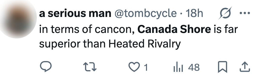 The only propaganda I'm falling for in 2026 is that "Canada Shore" is a masterpiece.