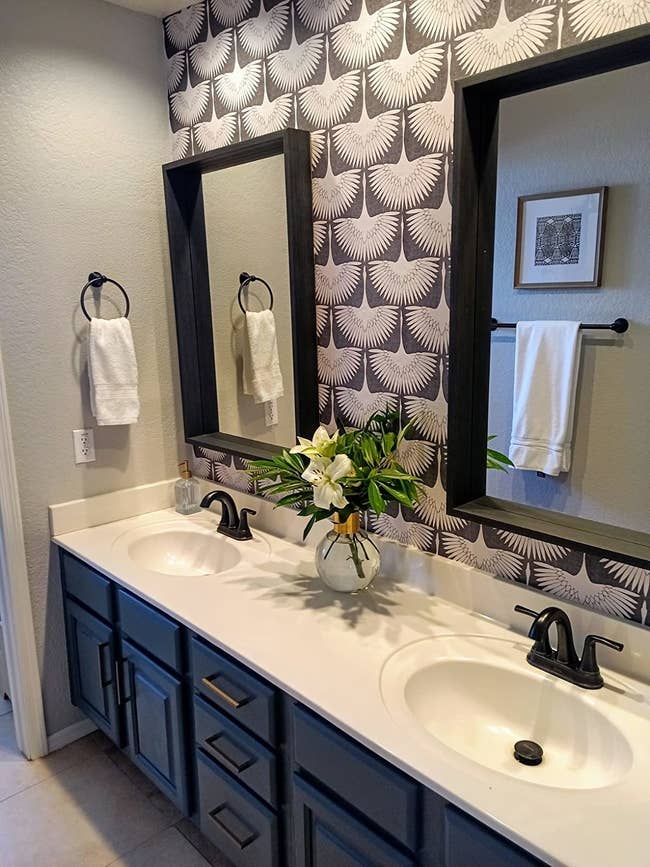 You guessed it: just like most of the other decor in this post, if you don't love this example, Amazon has all kinds of other pattern choices for peel-and-stick wallpaper! This particular brand, Tempaper, gets good reviews for how thick and durable it feels, but other peel-and-stick brands will have their own pros and cons. Some popular, highly rated ones include: NuWallpaper, Art3D, RoomMates, and Spoonflower.