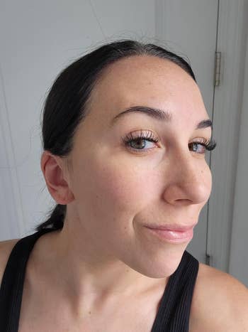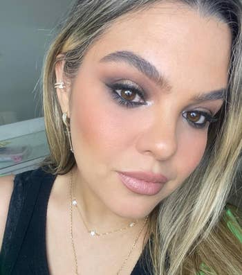 "I am not a new human to the tubing mascara game, and in fact readily spent $26 on the famous OG blend from Blinc every time it needed replacing. I didn't even love it for the length half as much as the fact that tubing mascara like this genuinely never smudges, but can I just say — regardless of price, the E.l.f. tubing mascara formula blows all the others I've tried out of the water. It gives me way more length and volume than other brands, slides on so much more easily, stays put ALL day, and never, ever smudges. My favorite part, though, is how gently and easily it comes off with soap and water. In the past, other mascara removals have felt rough on my lashes, but this comes off so fast that I'm like ??? was I even wearing mascara a minute ago?? Anyway, I hesitate even writing this review because I want to gatekeep the hell out of this before it sells out, but the world needed to know. I'm a big fan of the brown shade (which is what I'm wearing above!), but it also comes in black and soft black."