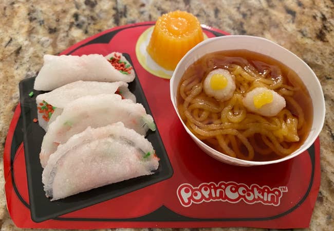 Promising review: "It’s so fun and satisfying to make, 100% plan to order more just for the fun of it. Making the ramen was my favorite part; it even feels like you’re eating real ramen!! The least favorite was the broth; it was too sweet for me, but I didn’t expect much. The dough tasted the best. Overall, this cute candy was affordable for making my childhood dream come true! I always wanted to try one of these. Will definitely try out more. <333!!!" —Brittany