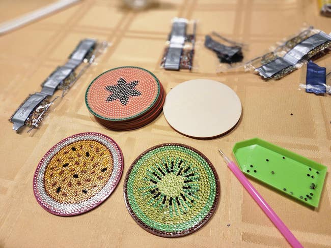 Promising review: "Very sticky and plenty of jewels and tools. Easy and beautiful. I recommend coating with something like ModPodge when finished for durability, since the wood and cork may soak up water with condensation." —Lowe