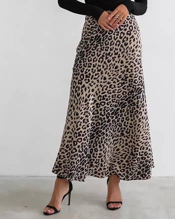 Emma Lord on our Shopping team has this and says: "I bought this in anticipation of fall and LOVE the fabric and the waistband — it's thin and well-structured enough that it's phenomenally easy to pair with crop tops and regularly-hemmed tops alike. I am especially eager to start pairing it with chunky sweaters when the weather cools down. I'm 5'4" and would only feel comfortable wearing this with a biiiit of a heel, so if you're on the shorter side, you may want to get it hemmed!"