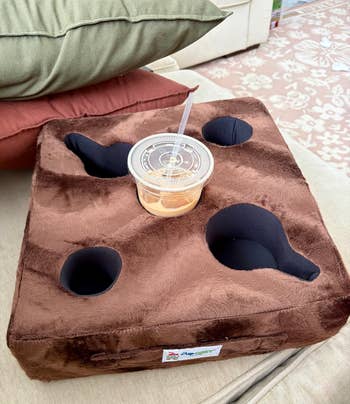 Cup Cozy Pillow is a small business that specializes in family-friendly snack and drink organizers. Check out a TikTok of the Cup Cozy Deluxe Pillow in action.