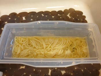 Promising review: “I have been using this for a couple of years now, and it is a great and easy way to make pasta without using the stovetop and boiling a pot of water. I use it to make all kinds of pasta and spaghetti, and it comes out perfect. It has instructions on how long it takes to cook each type of pasta and for how long. It took a learning curve at first, but usually now I just cook it in 2-3 minute increments, depending on how big or thick the pasta is, and I keep checking it for doneness, and it comes out cooked every time. The cover has measurements for how much [pasta] to use, and you use it to drain the pasta. It also contains measurements inside to know how much water to put. ( I just usually just cover the pasta with water and it still comes out fine ) Definitely a product I would buy again, and may have an extra on hand.” —Lincoln
