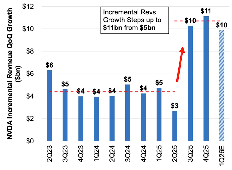 This is The Takeaway from today's Morning Brief, which you can sign up to receive in your inbox every morning along with: What we're watching What we're reading Economic data releases and earnings Nothing could get mighty Nvidia's (NVDA) stock rocking into the weekend, two days after its much-awaited earnings. Not founder and CEO Jensen Huang doing three TV interviews in his iconic leather motorcycle jacket on earnings day. Not the usual glowing Wall Street analyst reports where you would think all 61 sell-side analysts are somehow related to Huang. Not even what l reasoned in a live post-earnings show on my X account was an old-school blowout Nvidia quarter and guide. Digging more into Nvidia's report: Almost $60 billion left on its share repurchase plan (thank you, 10-K). It's likely that is used by Nvidia to buy the post-earnings dip. About an $11 billion paper gain on its investment in struggling Intel (thank you, 10-K) Current-quarter revenue outlook $6 billion ahead of consensus. This was a major reset to expectations. Revenue growth reaccelerating (see chart below). Profit margins sequentially improving. CEO Jensen Huang says “compute demand is skyrocketing.” "Generational growth at inspirational valuation," said one Wall Street tech analyst I follow in a client note. What am I missing here on Nvidia? Apparently, the next hot catalyst. "There is no catalyst," head of Visible Alpha research at S&P Global Melissa Otto said on Opening Bid (see video above). I thought more on this after the show ended, and Otto has a point. Nvidia's investor base knows basically everything coming from the company in terms of new chips. It knows the AI capex build-out story that is driving Nvidia's business. It knows Huang will always be bullish. It knows Huang is all in on humanoids and self-driving cars. And at the end of the day, how much more Nvidia stock could retail and institutional investors own at this point? It already likely makes up a huge portion of portfolios! So what is that unexpected positive surprise coming for Nvidia? No damn clue! If I had to guess, it's a whizz-bang product from recently acquired Groq to be unveiled at the company's big GTC event next month. If you have an idea on the next upside catalyst for Nvidia, get at me on X — I am all ears. Brian Sozzi is Yahoo Finance's Executive Editor and a member of Yahoo Finance's editorial leadership team. Follow Sozzi on X @BrianSozzi, Instagram, and LinkedIn. Tips on stories? Email brian.sozzi@yahoofinance.com. Click here for the latest technology news that will impact the stock market Read the latest financial and business news from Yahoo Finance