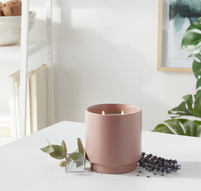 This lavender and eucalyptus candle is a great budget-friendly choice, as the decorative ceramic matte vessel is designed to be used as decor after the candle is finished. For this price, you don't often get a container worth keeping around! It has a 30-hour burn time, and it's recommended for folks who want to create a warm ambiance.