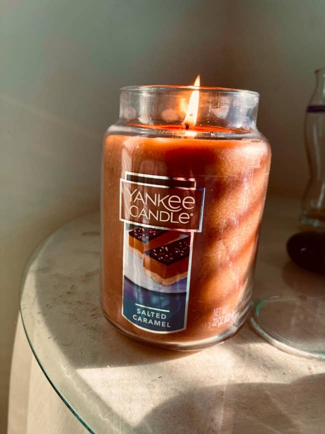 Promising review: "This is so good you'll want to eat it. It is one of the best candles Yankee Candle has ever done. It smells EXACTLY like salted caramel candy. But it’s not an overpowering, sickly scent. It’s steady and projects well, but won’t give you a headache from the sweetness. It’s overtaken the Christmas cookie-scented candle as my favorite. Get it, you’ll love it." —Chris