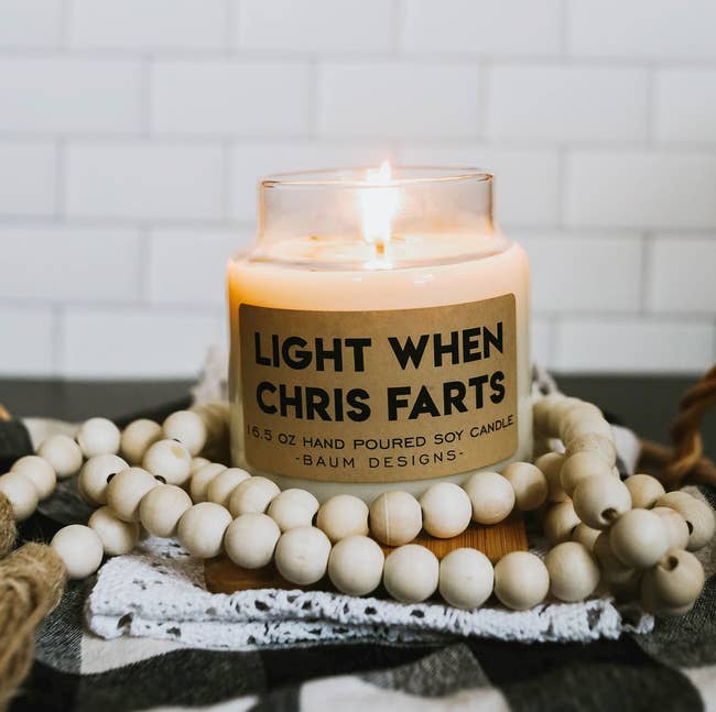 Promising review: "I got this as a birthday present for my dad. The label isn’t even my favorite part of this candle — the mahogany teakwood scent is AMAZING! The lid is airtight, and the jar itself is of great quality, so this’ll get plenty of use once the candle itself is gone. It was much bigger than I was expecting, too!" —Sophia Rokas
