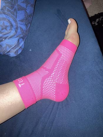 Promising review: "I wear this half a day on badly damaged ankle that tends to swell. This brace helps to decrease the amount of swelling. Bought another one because works well and is comfy to wear, fits in most shoes with my socks over it. Bought a size up so not too tight. The closed back does not irritate my Achilles tendon as the open back ones do." —NancyJ