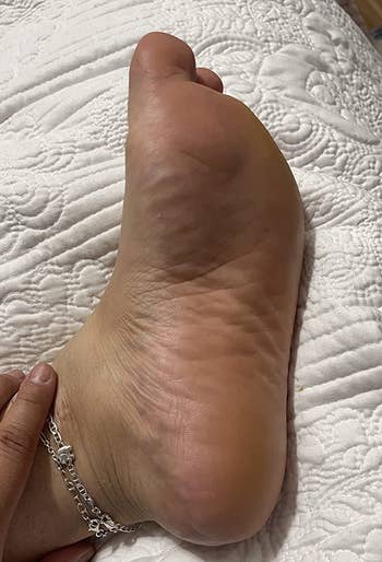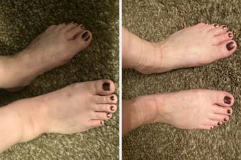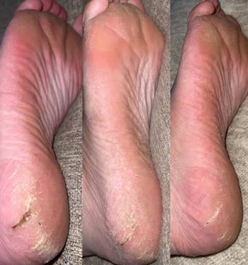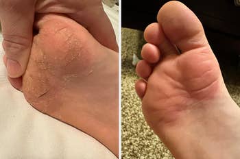 Promising review: "I used these socks with Dr. Scholls severe cracked heel balm, every night for the first week and then on and off for the next few weeks. Photos (shown above) are about three weeks apart. My heels had deep, painful cracks that would occasionally bleed, and now they're almost gone." —Manuel C.