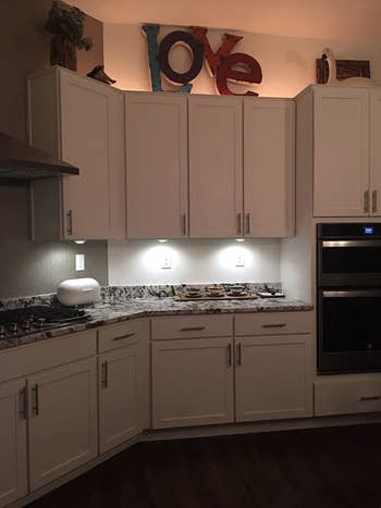 We hope you love our recommendations! While every product is independently chosen by our editors, BuzzFeed and our publishing partners may collect a share of sales or other compensation from the links on this page. You can read more about how our affiliate partnerships work in our Editorial Standards & Ethics Guide. Upgrading your home can feel like a lot of work, but these peel-and-stick tiles will easily transform your space in a snap. It took most reviewers less than an hour to completely revamp their desk, and it was two hours *tops* for others (depending on how much space you're redoing!). Psst — If you pick this up, check out this reviewer's great installation tips for applying it to a desk! Promising review: "I do not have the money for a new vanity right now. Insert DIY project of covering my ugly pink bathroom vanity in marble contact paper. It looks 100% better, and it’s super durable. It’s a little tricky to work with at first, and then you get the hang of it. I’m buying more for my half bath! Update: My vanity still looks great a couple of months later! I decided to do my tabletop in my laundry room [above, right], and it looks great too! Tips: Make sure there is nothing on the surface, as bumps will show through with the tiniest of debris. Also, one roll is not enough; always buy more than you think you’ll need!" —Natalie Lamb Get it from Amazon for $5.99+ (available in 11 sizes and six colors). Promising review: "These are awesome! My son installed them with no problems. They look much more expensive than what they cost, function well, and I am so happy with this upgrade." —Gina C. Ashline Get a set of 30 five-inch pulls from Amazon for $29.99 (also available individually and in smaller and larger pack sizes). Promising review: "I didn't think these would last through one Oklahoma Spring tornado season but they have. They were easy to install and very durable. They add a very unique touch to my new garage doors." —Lila S. Get it from Amazon for $22.99+ (available in three hinge styles). These under-the-cabinet lights are battery-powered and come with a remote that will allow you to power them on and off, change their intensity, and set them to be motion-activated. Promising review: "I just remodeled my kitchen and wanted lights under my cabinets to give it a cozy feel. I wanted something easy to install but effective. These lights are great! You can adjust the brightness and can even put them on a timer so they turn off on their own after 15, 30, or 60 minutes. They come with a sticky tape to attach to cabinets, but I also added sticky back Velcro, and they have stayed on perfectly. The company sent me an email offering any assistance if I should need it. I absolutely LOVE them and would recommend." —Lisa Corey Get a pack of three from Amazon for $14.99 (also available individually). Promising review: "I live in an apartment community, and I wanted to find a solution to cover up my windows without using my blinds/curtains. Let me just say...wow! This beyond exceeded my expectations. Not only does it give me the privacy I need, but the way the lights reflect in the daytime AND nighttime is just breathtaking! In the morning, when the sun shines through, tiny little rainbows get cast all over the bedroom! At night, it looks so cozy, warm, and has a beautiful, realistic stained-glass look to it." —Katie Coyle Get a roll from Amazon for $5.51+ (available in 14 sizes and four colors). Promising review: "It's beautiful and installation was really easy. I love it. It is wonderful!!! The pattern changes color as the sun passes throughout the day. Really pretty." —Lily Fred Get it from Amazon for $18.99+ (available in four sizes and 16 designs). Promising review: "This reeded glass window film was very pretty when installed. Gave just the right amount of obscurity that still allowed in light but maintained privacy when viewing from the outside. I bought more of this and offered it to my son who is enjoying it at his apartment too. We used it on the bottom half of windows and kept the upper half of windows open, which was the exact problem this film solved. Lots of choices, too!" —Liza S Get it from Amazon for $5.76+ (available in 12 sizes). Promising review: "I live in an apartment so I didn’t want to damage my wall with nails and all that. So I’m very glad to have heard about this product. It was so easy to set up, it holds the weight of my blackout curtain and curtain rod well. I even pushed down on it a little to see how secure it was and it did not break. I definitely recommend it for anyone that is renting to keep the walls damage free." —Alyssa Get a set of three from Amazon for $18.95 (also available in other colors and styles). Each tile measures 12-inches by 12-inches. Promising review: "This brought new life to my super boring kitchen! This was much easier than I thought and was really worried about taking on this project but I'm glad I did. Took me over three hours from start to finish." —Blood Agent Read the rest of this customer's in-depth review for some handy tips and tricks! Get six self-adhesive tiles from Amazon for $15.93+ (available in 16 styles). Promising review: "I redid my entire bathroom! We moved into our home two years ago, and our small main-floor bathroom had hideous orange mosaic tiles. We want to eventually gut and revamp our bathroom, but wanted to give it a cheap facelift. Floorpops made that possible, and it's a very inexpensive option! We used caulk to seal some of the tiny gaps and caulked around the tub and underneath the baseboards for a good seal. The tiles are not moving at all and have adhered okay." —Agnieska Get a pack of 10 tiles from Amazon for $15.74+ (available in two colors and three sizes). Promising review: "I was very skeptical, but also figured for [the price], what did I really have to lose. I am beyond blown away. It was super easy to trim to fit and apply to our black dishwasher, looks phenomenal