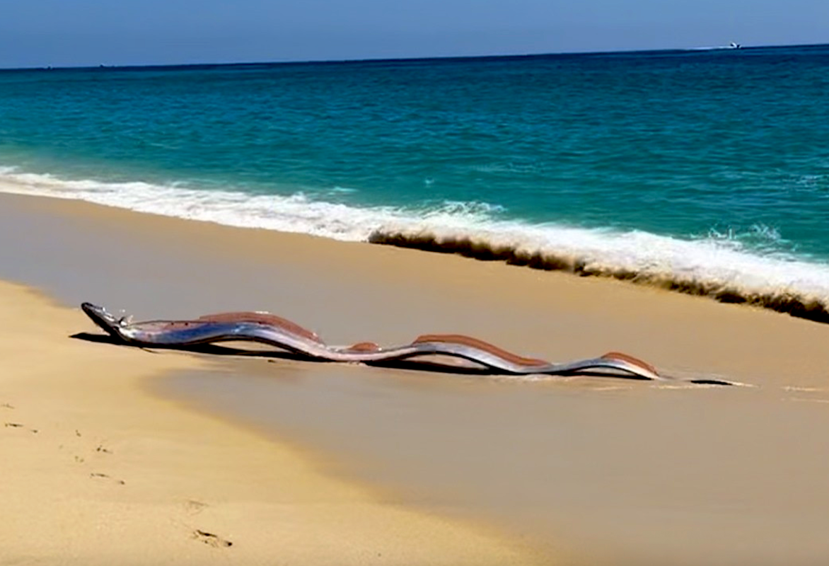 30ft ‘Doomsday Fish’ Stuns Beachgoers in Cabo As 2 Rare Oarfish Wash Ashore (Video)