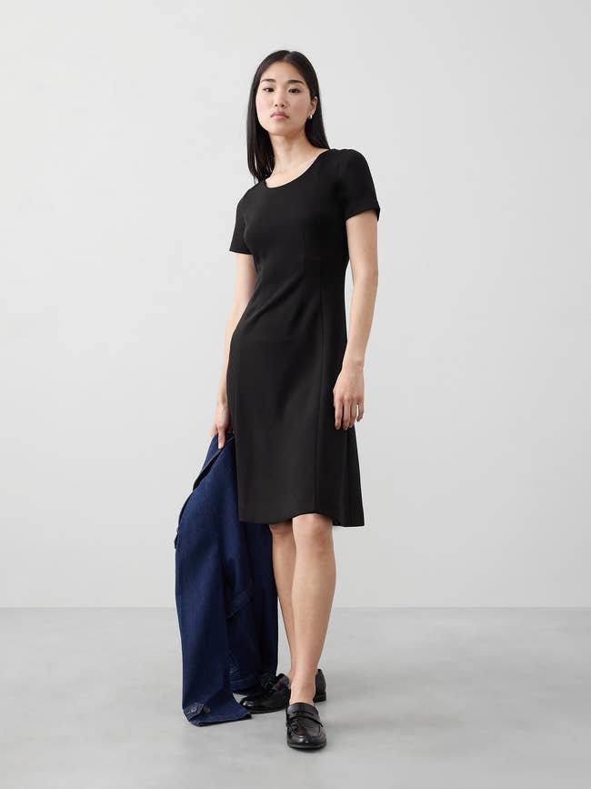 We hope you love our recommendations! While every product is independently chosen by our editors, BuzzFeed and our publishing partners may collect a share of sales or other compensation from the links on this page. You can read more about how our affiliate partnerships work in our Editorial Standards & Ethics Guide. Stock up on work classics, timeless basics, and the dress you're going to wear to all 1,000 summer weddings you have this year — for 40% off. Unless otherwise specified, all sizes in this post are listed in women's. No code is needed to score these discounts! Unless otherwise specified, all sizes in this post are listed in women's. Promising review: "I wasn't sure if this coat would be boxy, but I decided to go ahead and order it, since BRF has a great return policy. I was pleasantly surprised at the quality and fit of the coat. I wanted a coat for my upcoming spring trip to Italy, and I plan to layer it with lighter sweaters and shirts, and the XS is a bit roomier than I wanted. I decided to order an XXS to see if the fit is better with lighter layers. In any case, I think this coat is a fabulous and stylish addition to my spring wardrobe. I live in Dallas, so I anticipate wearing this quite a bit. It's knee-length, so it will be my go-to jacket with jeans and trousers. Also, as other reviewers noticed, it's a light beige and not gray at all, so don't let the color deter you from ordering this." —Donna T. Price: $120 (originally $200; available in sizes XXS–XXL, petite sizes XXS–L, and two colors/fabrics) + 20% off at checkout Promising review: "I was pleasantly surprised by the quality and how beautiful this bag is in person. It's much more beautiful than it looks in the pics. It's a large-size bag and holds a lot of stuff without distorting the shape of the bag." —Renee B Price: $90 (originally $150; available in three colors) + 20% off at checkout Promising review: "I found my perfect pair of wide-leg pants with cuffs. These look tailored and on-trend. I love them." —Anne M. Price: $60 (originally $100; available in regular sizes 24–35 with two inseams, petite sizes 24–32, and seven colors/washes) + 20% off at checkout Promising review: "The animal print is very cool, and the shoes are very comfy! True to size." —Hania B. Price: $60 (originally $100; available in sizes 6–10 and two colors) + 20% off at checkout Promising review: "I absolutely love this shirt. It lies so nicely, fits great, lies flat under other tops, silky smooth." —Jenny L. Price: $48+ (originally $80; available in regular sizes XXS–XXL, petite sizes XXS–XL, and eight colors/patterns) + 20% off at checkout Promising review: "I gifted myself these earrings for my birthday, and I couldn't be happier. They have a timeless, classic style with a modern vintage gold finish that adds just the right touch of elegance. The hoops are a little on the heavier side, but they look absolutely lovely and elevate any outfit from casual to dressy. Definitely a piece that makes you feel special every time you wear it :)" —AD Price: $24.97 (originally $45) + 50% off at checkout Promising review: "Very impressed by the quality and fit of this vest. Material is like a thick ponte fabric that doesn't wrinkle and has great stretch. Vest is lined, if you're in between sizes I recommend sizing up. Length is great, and overall extremely good quality. I'm thrilled!" —Brittney G Price: $60+ (originally $120; available in regular sizes 0–18, petite sizes 00–14, two fabrics and five colors) + 20% off at checkout Price: $99.97 (originally $200; available in regular sizes XXS–XXL and petite sizes XXS–S) + 50% off at checkout Promising reviews: "I did not expect to love these boots. I don't know why because I truly love everything I get from Banana Republic Factory. I thought for sure that when I received them, I would be returning them. But I just received them and slipped them on, and they are perfect. They fit great (I went with my normal size despite other reviewers' advice and they are perfect… possibly because I'm wearing thick socks). I also didn't understand what was *slouch* about them; they are just not skin tight. But the heel is the perfect height, and they are just dressy enough for a dinner out in the city. Love them! I want to get more colors!" —Jayne M. "I have wide calves, bunions, Plantar Fasciitis, and low expectations. These boots fit so well, and I had no foot pain. They only slouched a little bit during the day, but nothing annoying. As other reviews have stated, they are large fitting. I ordered my true size and was fine wearing tights. There's also enough room to wear thin socks or even insoles. I'm thinking about buying them in black just because." —Marie B. Price: $50 (originally $150; available in sizes 6–10 and four colors) + 20% off at checkout Price: $78 (originally $130; available in sizes 6–10 and two colors) + 20% off at checkout Promising review: "This skirt fits beautifully and will definitely be a staple of my wardrobe! Super comfy and stylish with boots." —Zeta M. Price: $55 (originally $110; available in regular sizes 0–18, petite sizes 00–2, 6–16, and two washes) + 20% off at checkout Promising review: "Yes, I ordered half a size smaller like other reviewers said to, and they fit perfectly! I think they are both comfortable and cute! And you can't beat the value. Wish there were more colors!" —P Hunnings Price: $54 (originally $90; available in sizes 6–10) + 20% off at checkout Promising review: "I bought this for my college-age daughter, who is 6'1" and bought it in Tall. Fit was perfect, and the material was amazing! Highly pleased with this purchase!" —Anna J Price: $50 (originally $100; available in regular sizes XS–XL, tall sizes S–XL, petite sizes XXS–L petite, and in navy) + 20% off at checkout Promising reviews: "I bought this dress in the navy stripe, green, and black. Nice, lightweight cotton and a great price. These dress
