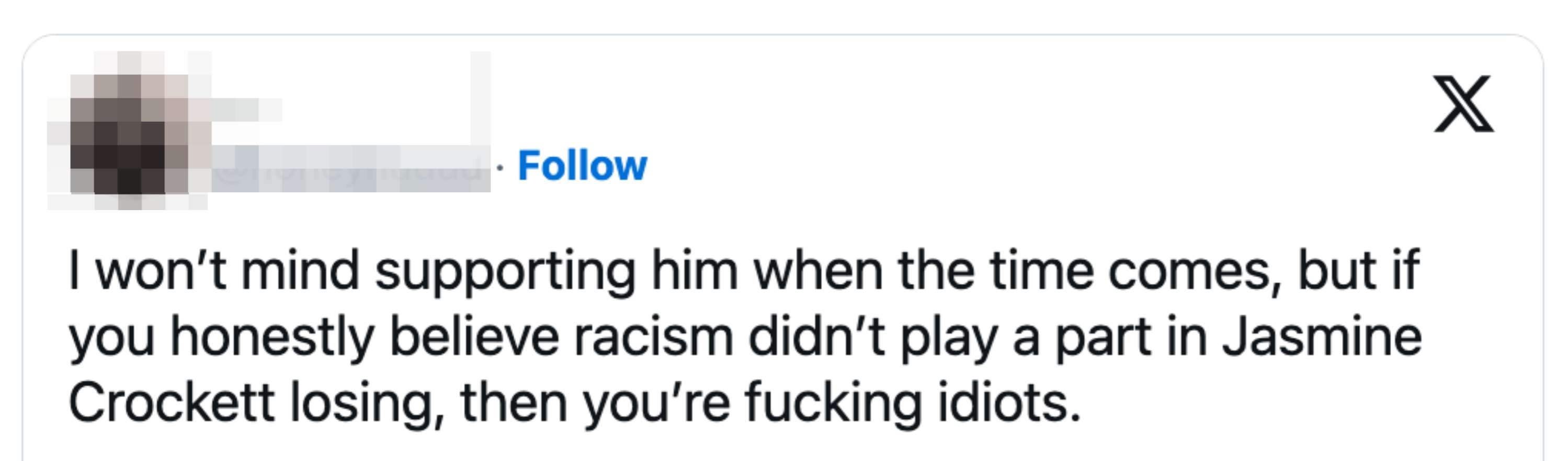 "if you honestly believe racism didn't play a part in Jasmine Crockett losing, then you're f**king idiots." Hi, I’m Michaela Bramwell, and I'm a Junior Staff Writer here at BuzzFeed, covering everything trending news, from your latest viral TikTok to the chaos of today's politics.