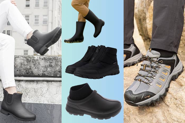 We hope you love our recommendations! While every product is independently chosen by our editors, BuzzFeed and our publishing partners may collect a share of sales or other compensation from the links on this page. You can read more about how our affiliate partnerships work in our Editorial Standards & Ethics Guide. "Best money I ever spent on a pair of shoes." And as much as I am coveting a pair of Moon Boots, they are not currently within my budget. Luckily, there are scores of waterproof shoes at Amazon that are not only under $100, but are chic and wearable as well. We are not ruining an entire outfit for the sake of keeping our feet dry in 2026. Keep reading to take a look at these highly-rated, reviewer-approved shoes and snag a pair ASAP, this dreary weather is going nowhere, fast. Everyone needs a timeless pair of Chelsea boots in their arsenal, and these rubber boots are essential. They are waterproof, easy to clean and perfect for slogging through the elements. They have elastic fabric along the sides to make them easier to get on and off, come in a range of cute colors and are surprisingly cushy and comfy despite being slip-resistant and functional. You can get them in women's sizes 6–13 and men's sizes 5–12. Promising review: "Good quality for the price. The color is nice and it fits true to size. The boot's texture and thickness are of good quality, sole has a good grip, keeps me from slipping. It doesn't have a lining, so it's warmth level is for Spring and Summer." —giggidy We're in luck, because these cool slip-on rain shoes from Skechers are currently on sale for under $100 in the blue color. They have that highly-coveted heel pillow that the brand is known for and makes the shoes easy to slip on and off. They feature a comfortable memory foam insole and casual, relaxed silhouette that is comfortable and has a spacious toe box. The shoes are made with seam-sealed waterproof materials and have an anti-slip Goodyear rubber outsole for extra grip and traction on slippery surfaces. These shoes were designed as part of the Skechers and John Deere collaboration and won't last forever, so snag them while you can. They're available in men's sizes 7–14 in regular or extra wide silhouettes. Promising review: "These shoes are workhorses. Quality built and very comfortable and functional. I wore these to Alaska for walking around during shore excursions and hiking. Completely waterproof on the rubberized top and the treated leather held up very well to the rain elements keeping my feet warm and comfortable. "Skechers" reliability, and John Deere durability were great selling points for me. The size was right on; I ordered what I normally wear, and the fit was great." —Patiodaddyo Get them from Amazon for $93.50+ (available in three colors). I've had my eye on these snow boots since stylist Becky Malinsky recommended them in her newsletter, 5 Things You Should Buy. I trust her taste implicitly, and the fact that these boots are currently available for under $65 feels like a gift from the style gods. In her newsletter, Malinsky credits her sister for steering her in the direction of Kamik, a Canadian bootmaker known for affordable shoes designed to be worn in rugged conditions. She said, "I’ve now been wearing them for six weeks: for school drop off, for to-and-from city schlepping, ski weekends and the occasional mornings when snow graces Cedar Hill with some fresh baby pow." These shoes are available in women's sizes 6–11 and are ready to go in my cart. Promising review: "Love these boots! They are well made, light weight and keep my feet warm and dry without needing to wear big bulky socks. The fit is a little snug, so if you have wide feet you might want to size up by a 1/2 size. Otherwise, they are a great looking, slim winter boot. I have had my pair for about a week and have worn them daily, they appear to be durable and are very well made. As I already said, they are extremely light weight and are very comfortable. An added bonus is that they are very easy to put on and take off, just slip your foot in and zip them closed - no heavy bulkiness to struggle with and no laces to fuss over." —Amazon customer If you love a great clog, then you definitely want to add these timeless garden-style clogs to your wardrobe. They have a rugged lug-sole tread that keeps you stable and provides an excellent amount of grip, while the waterproof material keeps your feet dry. They're easy to clean and can be easily styled, whether you're commuting to work or mucking around in the yard. They're available in a range of colors and patterns in women's sizes 6–11. Promising review: "I was looking for a slip-on waterproof shoe to go into the yard with the dog in wet weather. These are perfect, they look fun, are comfortable and slip on easily for quick potty trips. I was surprised how supportive and comfortable the insoles are with arch support and padding. They are close fitting around the upper foot so stay on to play kick ball and have good grip on the slippery deck." —L. Thelin If you're in the market for a Chelsea boot, take a look at this lined option. It gives you the sleek and classic silhouette while adding a lot of comfort and warmth thanks to its soft faux-fur lining. It's made with durable vulcanized waterproof rubber and features a non-slip outsole that gives you tons of stability on slippery, wet surfaces. The stretchy side gores and back pull tab make them a breeze to get on and off, which is a must when we're bundled up and carrying lots of items. You can get these shoes in women's sizes 5–11 in six colors. Promising review: "These women’s rain boots keep your feet completely dry while still feeling comfortable all day. The sole has good traction, so you don’t slip on wet sidewalks, and the fit is true to size. They’re easy to clean, and the design is cute enough to wear with casual outfits. Great for rainy days, puddle-splashing, or just everyday errands 