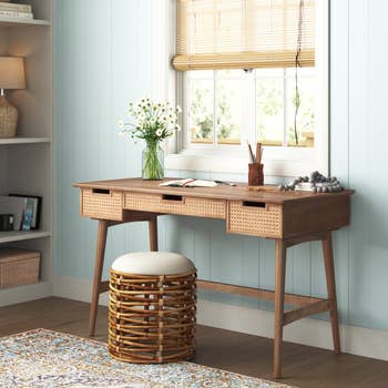 We hope you love our recommendations! While every product is independently chosen by our editors, BuzzFeed and our publishing partners may collect a share of sales or other compensation from the links on this page. You can read more about how our affiliate partnerships work in our Editorial Standards & Ethics Guide. If you don't know where to start when it comes to transforming the aesthetic of your home, this post is for you. Promising review: "This is a fantastic salt lamp. It's made exceptionally well. Very heavy! Medium sized. Dimmer switch and bulb included. The salt piece itself is cut into a perfect square that sits on a dark wooden stand. The salt lamp does not come loose from the stand, it is attached strongly. Adds a lot of light to the room. Would buy again and recommend to anyone looking for something built well, a good size, and aesthetically pleasing." —Zelda Zoink Promising review: "I was surprised at how sturdy and nice this shelf was. Very expensive looking and sturdy when out together. The biggest bonus was how the parts where all labeled and it came with the exact tools you needed to put together. Very happy with my purchase!" —Rhonda Coe Get it from Amazon for $94.99++ (available in three colors). Promising review: "Absolutely stunning! We were looking for art that provided warm wood tones and texture and these hit the nail on the head! They are so unique and everyone that sees them compliments them. They were also extremely well packed for transport. Do not hesitate to purchase!" —KSP Get it from Amazon for $59.74+ (available in two sizes and seven designs). Promising review: "Really pleased with the quality and appearance of this table. It was easy to put together, the top is very thick and sturdy, and the look is quite upscale. Great buy for the price." —Stacey Pennington Get it from Amazon for $119.99+ (clip the coupon on the product page to get it for $109.99+; available in six colors). Promising review: "It is well worth the money, solid, sturdy has water drain holes and a wonderfully marbled appearance. Cleans easily, is exactly as described, and I am thrilled with this buy!!!" —C Tillman Get it from Amazon for $11.99+ (available in three styles and three colors). Promising review: "This is a beautiful bed frame. It’s simple and classic. It’s well made. It was easy and straightforward to assemble. It’s sturdy and heavy. The mattress fit perfectly on it and provides sufficient support. Definitely recommend." —Leah Green Get it from Amazon for $60.82+ available in Twin-California King sizes and five colors). Promising review: "This duvet cover is beautiful. It’s exactly what I was looking for! The beige color is lovely, and the strings make it easy to attach to the comforter. It is easy to clean and fits perfectly over my queen size comforter." —T Get it from Amazon for $37.03+ (available in Twin - California King sizes, a variety of colors, and two styles). Promising review: "Perfect complement to new bathroom. Looks beautiful. Very functional and stylish." —Phil Sheridan Promising review: "Charming and functional – the perfect decorative touch. This wicker scalloped tray is beautifully crafted and adds the perfect touch of texture and charm to any space. The scalloped edges give it a unique, vintage-inspired look, and it’s just the right size for styling candles, coffee table books, vases, or use as a food tray. Lightweight but sturdy, it’s as practical as it is pretty. A lovely piece for any home." —Simply_Dazlyn Get it from Amazon for $24.99+ (available in four sizes and two styles). Promising review: "I really love how these look! These are nice and sturdy metal art pieces. They had all the hardware needed to hang them, and because they have spacers that push them out a little from the wall, it creates a nice 3D effect." —Kimberly R. Get it from Amazon for $44.99+ (available in three sizes and three styles). Promising review: "Loved this so much, I bought another one! Great display piece in the living room for my plants, etc. I feel like it’s made a big impact on the space. Feels sturdy, looks nice, and put together easily. Should I buy two more? :) Seriously a top favorite design purchase ever." —HN Promising review: "This is perhaps my best purchase on Amazon ever. It's gorgeous. It's beautifully made. It's thick, soft, and warm. It comes in a reusable drawstring bag that gives the impression that the purchase is designer — what a great touch! I can't say enough how much I love the color, texture, and richness of this throw. I know I'll have to purchase one for my daughter. I've had this a while and have washed it in the machine on delicate and dried in the dryer, and it still looks just as it did when it arrived. It did not stretch out or shrink, and is still soft. I have to fight my dogs and my daughter over it lol. I LOVE this blanket!" —K. Get it from Amazon for $105.99+ (available in five colors and two sizes). Promising review: "These are the 'wow' in my living room. I'd buy more if I had the space. The gray is so nice and elegant. The gold on the gray is stunning. I love these." —Ebony Michelle Get it from Amazon for $127.99+ (available in seven colors). Great news: Reviewers say that this desk arrives nearly assembled. All you have to do is attach the legs, and you're done! BuzzFeed Shopping editor Elizabeth Lilly loves this: "Perhaps the reason I’ve been so bad at keeping around a box of tissues is because tissues just look...kind of ugly out in the open. But not with this lil’ cover! Now it’s a ~design element~ that I’ll hopefully remember to keep full. For now, it’s filled with a square box of tissues I unearthed from my old apartment’s closet while packing; it's presently neatly housed inside the tissue box cover, providing the 'smoke' for the tiny chimney. The only downside to committing to this box is that I'll have to buy square-shaped tissue boxes only now. But I can live with that. An