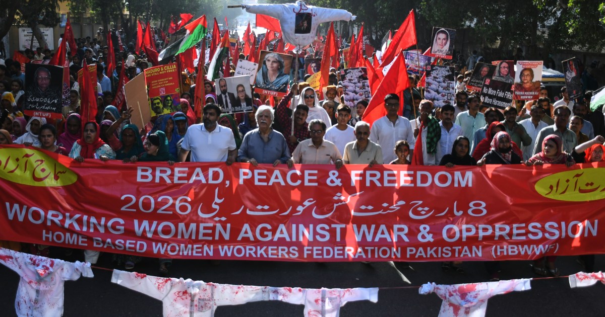 Marches on 115th anniversary of IWD place focus on issues like US-Israeli war on Iran and Donald Trump’s links with sex offender Jeffrey Epstein. Share Save Thousands of demonstrators have taken to the streets around the world to mark International Women’s Day, taking a stand on a number of issues including the US-Israeli war on Iran and gender-based violence. In Spain, where the government drew the ire of the United States for refusing to allow it to use Spain’s military bases for strikes against Iran, thousands of women took to the streets of major cities to call for an end to the war. “It is within our power to stop the war, to stop the barbarity, and to win rights,” said Yolanda Diaz, Spain’s second deputy prime minister. “We proclaim ourselves in defence of peace, in defence of the Iranian people, in defence of Iranian women.” On the first day of the joint US-Israeli war on Iran, strikes on a primary school in the city of Minab killed 165 girls, most between the ages of seven and 12, during class hours – the deadliest single attack on civilians so far. In France, where more than 150 demonstrations were held, 73-year-old rape survivor Gisele Pelicot led a march calling for an end to sexual violence, telling a crowd in Paris, “We won’t give up”. Pelicot became a global symbol in the fight against sexual violence after she waived her right to anonymity during the 2024 trial of her ex-husband and dozens of strangers who raped her while she was unconscious. Across the Atlantic, activists gathered at Zorro Ranch in the US town of Albuquerque, New Mexico, where the late convicted sex offender Jeffrey Epstein is alleged to have sexually abused and trafficked underage girls and young women. “The years-long cover-up and protection of Jeffrey Epstein’s allies and co-conspirators exposed a culture of impunity that tells survivors their pain is negotiable when powerful men are involved,” said Rachel O’Leary Carmona, executive director of Women’s March. In New York, protesters gathered outside Trump Tower for a “Believe Survivors” demonstration after this week’s publication of FBI documents by the US Justice Department describing interviews with a woman who alleged President Donald Trump sexually assaulted her when she was a minor. In Puyo, an Amazonian town in Ecuador, members of various Indigenous groups gathered to raise their voices about the degradation of the environment, and oil and gas expansion. “We want to live in a healthy environment and in harmony with the forest, so we are asking for respect and that public policies for nature are put in place,” said Ruth Penafiel, 59, from the Kichwa community in the northern Amazon. In Brazil, Sunday’s marches channeled outrage over the alleged gang rape of a 17-year-old girl in Rio de Janeiro’s Copacabana neighbourhood in January. The case gained national attention this week when four suspects handed themselves over to authorities. In Pakistan’s capital, Islamabad, police briefly detained several women’s rights activists attempting to hold a rally in defiance of a government ban on public gatherings imposed amid a surge in militant violence in the country. Aurat March, a network of women’s rights activists, condemned the crackdown, saying participants had been peacefully exercising their right to protest. Women’s rights activists shouted slogans during a protest in Istanbul, Turkiye. In China and Russia, vendors sold flowers wrapped in pink. And in Phnom Penh, Cambodia, local workers lifted fists and umbrellas as they celebrated. International Women’s Day, officially recognised by the United Nations in 1977, marks its 115th anniversary this year.