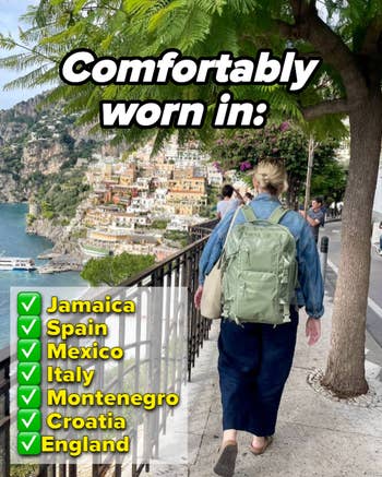 We hope you love our recommendations! While every product is independently chosen by our editors, BuzzFeed and our publishing partners may collect a share of sales or other compensation from the links on this page. You can read more about how our affiliate partnerships work in our Editorial Standards & Ethics Guide. Unless otherwise specified, all sizes in this post are listed in women's. If you’re determined to pack light but still want outfits that work for flights, sightseeing, dinners, and whatever weather your destination throws at you, a few truly versatile pieces can make all the difference. This list rounds up smart staples that pull double (or triple) duty in your suitcase. Think comfy jumpsuits, breezy pants, lightweight layers, easy lounge sets, and travel-friendly shoes reviewers swear by. Promising review: "Love these!!! Super flowy, lightweight, and surprisingly well fit. They wash and dry incredibly well, with no wrinkles after drying. I’m planning on buying more." —PBMC Get them from Amazon for $24.98+ (available in sizes S–XXL and in 18 colors/prints). Promising review: "I was so skeptical of buying these, as I’m not a crop top kind of gal and don’t trust built-in bras! These shirts are magic. I bought two colors. I wore one to a theme park, and it held me in and kept me comfy ALL DAY. I can’t recommend these enough for traveling, lounging, and everyday wear." —Nikki Get it from Amazon for $21.99 (available in sizes S–XXL and 22 colors). Promising reviews: "This is perfect for travel. I've worn it as PJs, on a plane with a blazer, and for a nine-hour car trip. Super comfortable and goes anywhere. I'll definitely be getting more!" —My Cat Steve Judges My Purchases. "I bought the navy blue to take on vacation after reading an article about how easy care these jumpsuits are. I loved it so much I bought the green. I take them out of my suitcase, hang them up, and they are ready to go in a few hours, no ironing needed. I get compliments every time I wear one of them." —AKSunshine Get it from Amazon for $37.97+ (available in sizes S–3X and 31 colors/patterns). Promising review: "Y'all — this shirt is the GOAT. I have like five now, and I keep buying more because I hardly want to wear anything else. I wear them to work (barista, on my feet and moving all day, lots of bending/reaching/lifting), to the gym, out on casual excursions with friends, and around the house for cleaning or relaxing. They are SO soft. They look brand new after washing, no pilling or shrinking at all. The fabric has good thickness and drapes nicely without clinging or riding up. I only have the black ones so far, but they haven't faded a bit. The seams are strong, too. I haven't had to sew any loose areas or clip any threads. The fit is cute and comfortable. I didn't know the world's best T-shirt could be found for $8, but here it is! Buy it!!" —Kit H. Get it from Amazon for $9.99 (available in sizes S–3XL and in 28 colors/styles). Promising review: "I absolutely love this wrap!! It is the perfect weight and size for travel. It didn't leave my side on an 11-day backpack trip through Europe and was used as a scarf, blanket, towel, and wrap all throughout the trip. Fashionable enough to dress up a basic travel day outfit, warm enough to keep away a chill on a cooler night, and light enough to pack away small into a bag or tie around a purse strap. I can't say enough great things! I am buying these as gifts for everyone I know that travels." —Jenn Get it from Amazon for $46+ (available in eight colors). Promising review: "This skirt is absolutely stunning! The quality is amazing for the price. I’ve bought similar skirts at other stores that are $60+, but this one is the best I’ve owned. You won’t regret it!" —Abby Get it from Amazon for $34.99+ (available in sizes S–XL and in 20 colors). Promising review: "If you’re on the fence about buying these leggings, DO IT. I bought a black pair to see how they’d fit and let me tell you! I have wide hips, big thighs, and a large behind, and these leggings fit perfectly! Even better, THEY ARE NOT SEE-THROUGH when I bend over!! I’ve *never* found leggings that weren’t sheer when I bent over before! I bought eight more in different colors, and they are all the same quality! I love them so much that over a year later, I bought two more black pairs!! I recommend these leggings to everyone. I swear I wear these to work at least three times a week. I love them!!" —hali howard Get them from Amazon for $9.99+ (available in standard and plus sizes, in three lengths, and in 25 colors/patterns). Promising review: "I absolutely love this jacket!!! It goes with just about everything and is comfortable. I went up a size after reading some of the reviews, and that worked out well for me. The length of the jacket is also a nice feature; it hits right about the hip and is not a midriff. I'm really glad I ordered this jacket. It's so cute, and I know it will last a lifetime. Levi's makes the best denim wear as far as I'm concerned." —Jo Packer Get it from Amazon for $62.50+ (available in sizes XS–XL and 1X–4X and in nine washes). I already had these pants in driftwood, black, and martini olive — and I recently picked up two more colors — because I can't get enough. They're extremely comfy, wash beautifully, and deliver a low-fuss look that's still super pulled together. I agree with the majority of reviewers who say they run large, so size down if you're between sizes! Promising review: "I loved these linen pants so much I ordered them in two colors. My go-to summer pants; they're great, high-quality linen and so comfortable. Easy to dress down at the beach or wear with a tailored top or sweater out to dinner. Already thinking of how I'll style them for fall! A must-buy. Runs slightly large, so size down!" —Ashley C. Get them from Quince for $42 (available in sizes XS–XL and in 14 colors/designs). Promising review: "I high