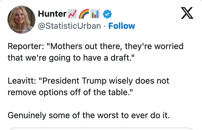 Related: "Some People Are Just Too Stupid To Know They’re Being Made Fun Of": 27 Of The Very Best, Most Brutal, And Absolute Funniest Political Tweets Of The Week "I know a lot of politicians like to do that quickly, but the president, as commander-in-chief, wants to continue to assess the success of this military operation." Related: "Can A Trump Supporter Explain": 49 Brutal, Brutal, Brutal Political Tweets Of The Month Related: The Internet Is Calling Out Karoline Leavitt In The Most Hilarious Way After She Claimed Trump Coined A 2000-Year-Old Phrase Related: 27 Photos Of Donald Trump In 2025 He Probably Reaaaaaally Doesn't Want You To See You Might Like: "I Freaking LOVE This": Just 30 Fun Products That'll Give You That *Spark* Of Delight You Might Like: 21 Items On Sale At Amazon This Week That Are So Eternally Useful, You’ll Never Regret Buying ‘Em Also in In the News: Everyone Is Applauding The Mayor Of DC's Response To Nancy Mace Asking Her To Define A "Woman" Read it on BuzzFeed.com