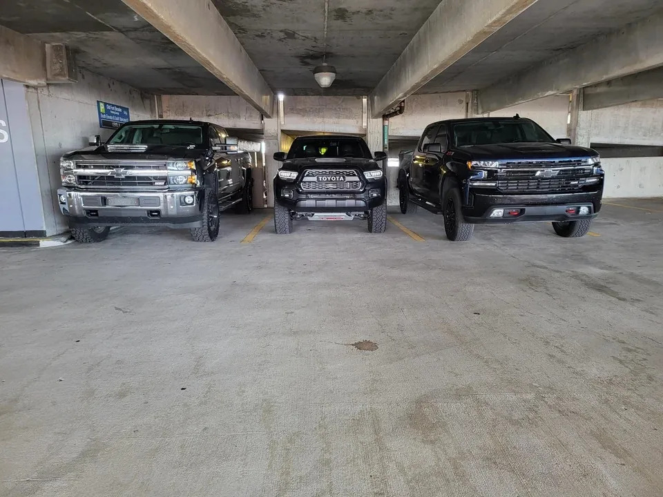 Photo of trucks lined up in public garage raises questions about modern car culture: 'A massive vehicle on its own'
