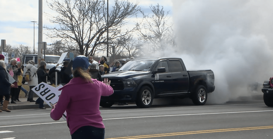 SYRACUSE, N.Y. (WSYR-TV) — Video shot by NewsChannel 9 during Sunday’s Women’s Day rally shows a black pickup truck revving its engine, smoking out demonstrators, as they rallied for women’s rights and democracy. Our crew was there as a crowd surrounded the vehicle on Hiawatha Boulevard. One woman stood in front of the truck, just outside Destiny USA. While we do not know what led up to this scene or if the man was provoked, we could see the black pick-up truck revving its engine, smoking out demonstrators on the other side of the road. As people surrounded him, one woman stood in front of his truck, trying to block him from leaving. The driver yelled at her to move. He then got out and continued to yell. Then the driver tried to reverse but pulled forward instead. Seconds later, in a close call, he nearly hit that woman trying to stop him from leaving. The young man got out again, yelled at demonstrators, and sped off. Syracuse police say they found the pick-up truck driver nearby — he said he was driving through the area when protesters surrounded his pick-up — and hit the car with their signs. Police took his statement, but as of this morning, it does not appear that any charges have been filed. In winter and summer, Gretsch piles up medals for Team USA How survivors rode out a deadly EF3 tornado in Michigan: ‘We’re going for a ride now’ Teens charged in NYC bomb attempt wanted to surpass Boston Marathon terror attack, prosecutors say Trump tells Republicans the SAVE America Act will ‘guarantee the midterms’ Democrats vow to shut down Senate over Iran conflict Copyright 2026 Nexstar Media, Inc. All rights reserved. This material may not be published, broadcast, rewritten, or redistributed. For the latest news, weather, sports, and streaming video, head to WSYR.