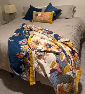 We hope you love our recommendations! While every product is independently chosen by our editors, BuzzFeed and our publishing partners may collect a share of sales or other compensation from the links on this page. You can read more about how our affiliate partnerships work in our Editorial Standards & Ethics Guide. This list is perfect whether you need a new placeholder for your bookshelf or item for your gallery wall or anything in between. Promising review: "Beautiful. This is great quality, and it looks like a real painting. 💗" —Yana Cucias Get it from Amazon for $15.99+ (available in four sizes and a variety of styles). Felt Right is a small biz transforming single-use plastic water bottles into felt tiles that look great and dampen sound. BuzzFeed Shopping writer Taylor Steele picked these for her home: "I chose a simple design because I know myself, and anything with several angles to contend with will make my brain hurt. But I love my felted wall! It adds much-needed color and texture to my living space. What was once a dull beige wall is now a colorful mosaic! And it's super easy to install, too. Though having a friend around to help you put adhesive tabs on the backs of each felt tile is great, too." Get it from Felt Right starting at $19.95+ (available in dozens of shapes/styles/sizes). Minimal Kind Pop is a small biz based in California, creating fun and unique switch plate covers. Promising review: "Contemporary. Fun. Can't wait for friends to notice. How can they NOT notice?" —writerp Get it from Minimal Kind Pop on Etsy for $12.54+ (originally $13.63+; available in 12 colors and 12 styles). Promising review: "It's a hit! My toddler and I love it. Even friends that come over love it! It was easy to install, has BRIGHT lights, and the colors are vibrant. It's absolutely perfect for a toddler room!" —Chula Get it from Amazon for $49.99+ (available in three sizes). Promising review: "Beautiful addition to any room as it adds a textile splash of elegance where before there was none. Hygge!" —ryan lager Get it from Amazon for $45.50+ (available in 10 styles). Promising review: "This is a very nice item that I am using in my small Florida apartment to enhance my decor since my hobby is growing indoor houseplants. It is the best-quality item I own. It's beautiful; the pictures didn't do it justice." —Sharon Boggs Get it from Amazon for $11.99 (also available in three other designs). Promising review: "This mirror is so much better than just a basic square mirror. It has character in its shape and design. Love it." —Scott Get it from Amazon for $62.99+ (available in four colors and 13 sizes). Promising review: "I’ve actually looked at this product over the last 18 months or so. Perhaps on this site and others, because I thought it was cool, and I had the perfect spot for it. Finally gave up because every time it said it was out of stock or gave me the indication that it wasn't gonna be available anytime soon. I had a handyman coming by today to take care of some things around my house, so I figured I'd look again and found this on Amazon. They delivered it within 15 hours. Amazing. I very highly recommend this product. As I continued researching and looking for this cool work of art over the last year and a half, the price was usually well over $70. So, this is an amazing price; don’t pass it up. It’s everything I hoped it would be, and it looks amazing on my wall." —Dave in Jensen Beach Get it from Amazon for $31.99+ (available in two styles and three colors). Promising review: "I’m loving my Tetris-style light!! And the ability to change it around is amazing — favorite item in the house!!!" —Leah Spencer Get it from Amazon for $15.97 (available in two styles). Promising review: "I’m so in love with this blanket! The fabric feels soft and breathable, yet it still keeps me warm and cozy. The boho floral and bird design is even more beautiful in person — it really adds charm to my room. I’ve used it on my bed, couch, and even outdoors, and it’s held up great. It’s lightweight but not flimsy, and the size is perfect for wrapping up or sharing. Plus, it’s easy to wash and comes out looking like new. Highly recommend if you want something stylish, comfy, and eco-friendly!" —Rejina Get it from Amazon for $25.19+ (available in five sizes and 28 colors and patterns). Vänt is a small business that sells upholstered headboard panels. I have one of these systems, and we recently got around to installing it (finally). It was sooo much easier to install than I expected. You simply install these bars onto the wall, and the piece slides into place. Each panel is separate, but several are attached to the same bar, so you can't go completely out of the box with the design, but TBH, I don't think you would want that. You can decide if you want them to be vertical or horizontal and how wide or tall they go. We put ours vertically and just slightly wider than our bed frame, and I love it. I also looove that the material is soft and smooth because my cats aren't drawn to it, meaning they don't claw the living hell out of it (which is an impressive feat). Promising review: "These wall panels are so versatile! You can do just about anything with them. They add a major LUXE quality to your home. You really can't go wrong with these!" —T Get it from Amazon for $189+ (available in two sizes and 41 colors). Promising review: "The Melting Clock is such a fun and quirky piece! Its Salvador Dali-inspired design is eye-catching and always gets compliments from guests. It’s the perfect decorative addition to a shelf, desk, or table, adding a playful and artistic touch to any space. While it’s more for looks than for precise timekeeping, it’s functional enough and makes a great conversation starter. If you’re looking for a creative and whimsical decor item, this clock is a fantastic choice!" —Sean Bozarth Get it from Amazon for $19.99+ (available in five col