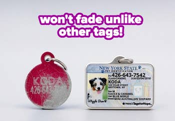 We hope you love our recommendations! While every product is independently chosen by our editors, BuzzFeed and our publishing partners may collect a share of sales or other compensation from the links on this page. You can read more about how our affiliate partnerships work in our Editorial Standards & Ethics Guide. Because your animal definitely deserves a "Barkin" bag and their own mini couch. I have this for my dog and I'm not sure who loves it more, me or her! It comes in five pieces and you have to let the cushions puff up to get the full couch effect, but that only took less than a day. It's so soft and fuzzy and I love that it came in pink! It's also super helpful that the cover comes off in case it starts to get dirty. Promising review: "This is the most perfect little cat/dog couch. It comes in pieces that you put inside the cover so you can remove to wash. It’s not hard to put together and the washable feature makes it so much cooler. It’s very study and feels like a real mini couch!" —Vanesza Stanley Get it from Amazon for $30.39+ (available in three sizes and seven colors). Promising review: "After going through I don't know how many plastic bowls I decided on this one. Wow! It's heavy duty, un-chewable, wind proof, large capacity, has curb appeal, and it's insulated to keep the water cool. I mean what more is there to say. The wife loves it. The dogs love it. The neighbors dogs love it. The neighbors want to know where I bought it. Get it! You will be happy!" —StretchZep Get it from Amazon for $19.99+ (available in five sizes and 16 colors). Promising review: "This cat water fountain has worked amazingly for my needs. It’s stainless steel, which helps reduce bacteria and mold, and it's easy to clean. Not huge and comes with a waterproof mat for underneath it! It’s also close to silent, even with the pump on. My kitty loves the light on the inside, too, so she can see the water move around. This gives me peace of mind that my cat will be drinking mostly constant, filtered, clean water! Comes with adapter and cord to plug into outlet as well." —Krista W. Get it from Amazon for $27.99+ (available in three colors and two sizes). Promising review: "I got this for my friend's dog, and she absolutely loves it! Even knows it by name —"go fetch Birkin!" and she will! It's pretty good quality, and probably more suitable for smaller dogs. My friend's dog is a small maltese-poodle." —cvandoorn Get it from Amazon for $15.95+ (available in two colors and other styles inspired by chic designer items). Promising review: "My dog’s foster mom said he loved this bed at her house, but unfortunately she had three other dogs that used it as well so my pup couldn’t take it. I wanted him to feel comfortable at his new home, so I ordered the bed and he is loving it! Since the actual bed sinks down, the edge of it makes a great pillow for him, and it’s cute, too. He’s around 64 pounds and I purchased the large. It looks a little small for him in the pics, but he has plenty of room when he’s curled up." —Kim Get it from Amazon for $44.99+ (available in three sizes and seven styles). Get a closer look at it on TikTok! Be sure to pay close attention to the measurements before buying — they're presented in both centimeters and inches. Promising review: "Although it seemed to take forever to ship and arrive, it is absolutely worth the wait. It is so soft, fits so perfectly on my couch, doesn’t move when I sit on it or when the dog jumps up, and looks nice too! I am extremely satisfied with this purchase and I hope it helps my couch to last a long time. I will update after awhile to be sure it holds up. PSA: Read the measurement description before you order. "After one month, zero regrets! It has been worth every penny. The couch cover is a fraction of the cost of my couch, so I think it’s been very worth it to help keep the fabric on my couch intact. I washed on delicate and tumble dried it on low by itself. Held up great. Again, I love it! Worth the wait and the cost." —sgur Get it from Amazon for $54.90 (available in a square cushion style as well). Promising review: "Took my beagle kayaking for the first time and wanted a vest for him in case he jumped out. I ordered the small according to the girth measurement and it fit well. He wore it around the house a few times in order to get used to it. He didn't like it at first but then got comfortable with it. On the water, I used the handle on the top of the vest to get him in and out of our kayak. Beagles run away! I'm happy with this vest." —Amazon Customer Get it from Amazon for $15.99+ (available in sizes XS–XL and seven colors) Promising review: "This works so well! It’s easy to use (if your dog will stop wiggling). I much prefer this pen applicator than a traditional nail polish brush. My min pin has black nails, and I was worried about it covering. It works just fine and shows up nicely on her nails. I start laughing when I look at her now prancing around with her red toes. My boyfriend won’t be pleased, but who cares, it’s hilarious." —Lindsey Get it from Amazon for $8.99 (available in 13 colors). Tags for Hope uses part of their proceeds to animals in need! Promising review: "I'm really impressed with how much information is placed in such a small amount of space, even with his picture! It looks as close to a license as possible, I spoil Lucius whenever I can, and this was a special gift that both protects him as well as adorns him! We are very pleased with our pendant, I.D. License! —Luis S. Get it from Tags for Hope for $24.99 (available in all 50 states). You have the option of creating a pillow that has your pet's full body or you can do just their face, up to you! Promising review: "This is the best Amazon purchase I’ve ever made. This stunning image is my beautiful dog. I have one, and I also gifted a pillow to all of my dog’s favorite people so that her face can grace many houses at onc