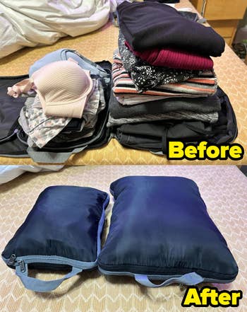 I bought the set of six for eight weeks in Europe with one suitcase, and they were perfect for keeping me organized during the packing process and making sure I had plenty of space for my other essentials (and I am someone who packs for every possible scenario lol)! My advice: lay your clothes as flat as possible, not folded or rolled. This way, they stack more evenly and when you compress, have less of a lump in the center, which lets them fit together more seamlessly! The four larger cubes held all my clothes, while the smaller one fit toiletries and the shoe bag, all three pairs I took. And, when I was fully unpacked, the larger cubes doubled as a laundry bag! I've kept using them on all my trips, even just for organizing.