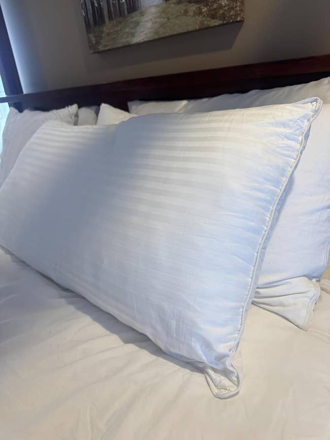 Promising review: "I was just looking at these pillows again in case I had to purchase new ones. I originally purchased them two years ago. They are the most wonderful and comfy pillows I've ever had. When I read the reviews saying they washed up badly, I was ready to buy new ones. Lo and behold, I washed them and dried them in the dryer, and they turned out great. I just have the older type stackable washer and dryer set, not large, just regular-sized. I put both pillows in the washer on gentle, then put both pillows in the dryer. I ran the dryer on medium heat and ran the cycle several times, just to make sure. I'm happy they turned out so well 'cause I love these pillows!" —T. Rune
