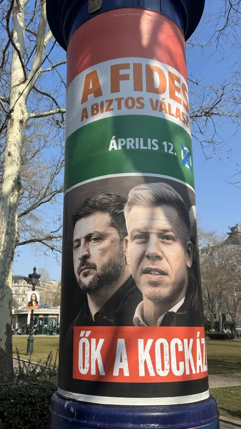 Others juxtapose Zelensky and Peter Magyar. His Tisza is accused of planning to get Hungary involved in the Ukraine war, by joining what is dubbed "the pro-war lobby" in Brussels - something Magyar vehemently denies.