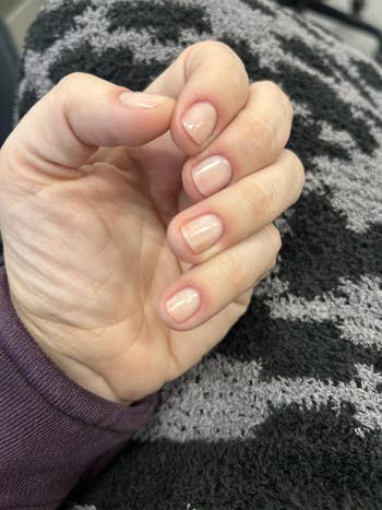 Promising review: "This is very high quality. I put this on my nails five days ago, and there is still no chipping. It feels nourishing on my nails and doesn’t have that nail polish smell. Plus, the nude color is beautiful (soft and natural). It looks like my nails were professionally done, and it did smooth out the ridges after application. Definitely recommend and worth the price." —AJ