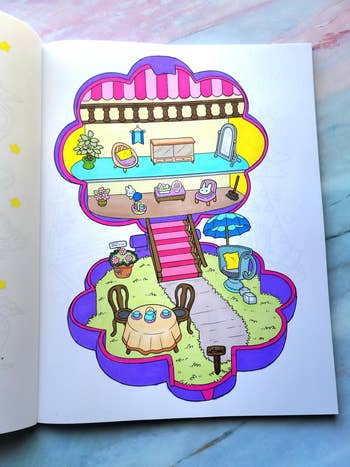 Promising review: "One of my favorites ever!!! The idea is perfect, and the pages are all unique and fun to color, with no repetition, and the details aren't too tiny. Great for anxiety if you're doing coloring for mental health. (I hate the pages that are just tiny patterns repeated endlessly. Makes my anxiety worse.)" —Ezra Johnson
